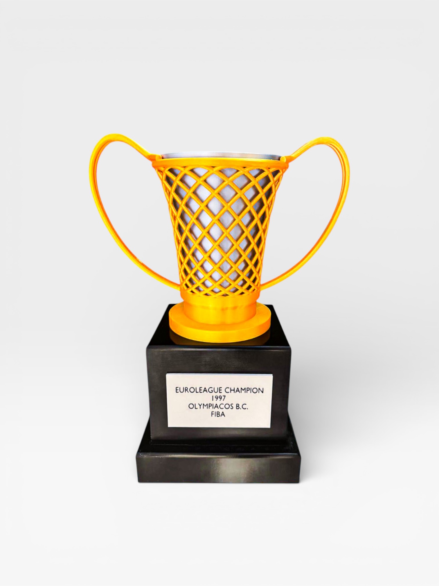 Το FIBA Euroleague Τρόπαιο του Ολυμπιακού είναι ένα συλλεκτικό αντίγραφο του τροπαίου που κατέκτησε ο Ολυμπιακός το 1997, αποτυπώνοντας τη μαγεία και την ιστορική επιτυχία της κορυφαίας ευρωπαϊκής διοργάνωσης.