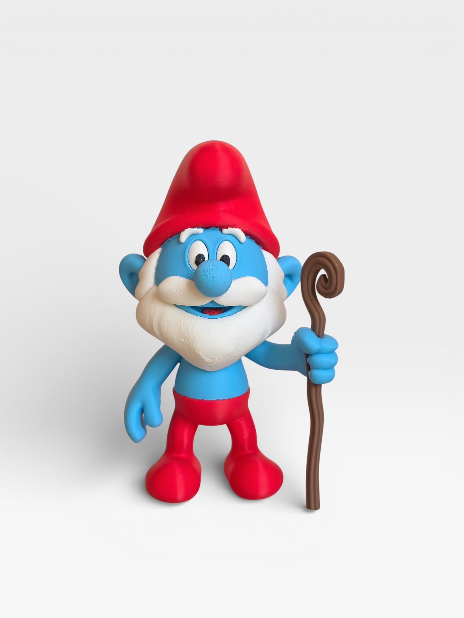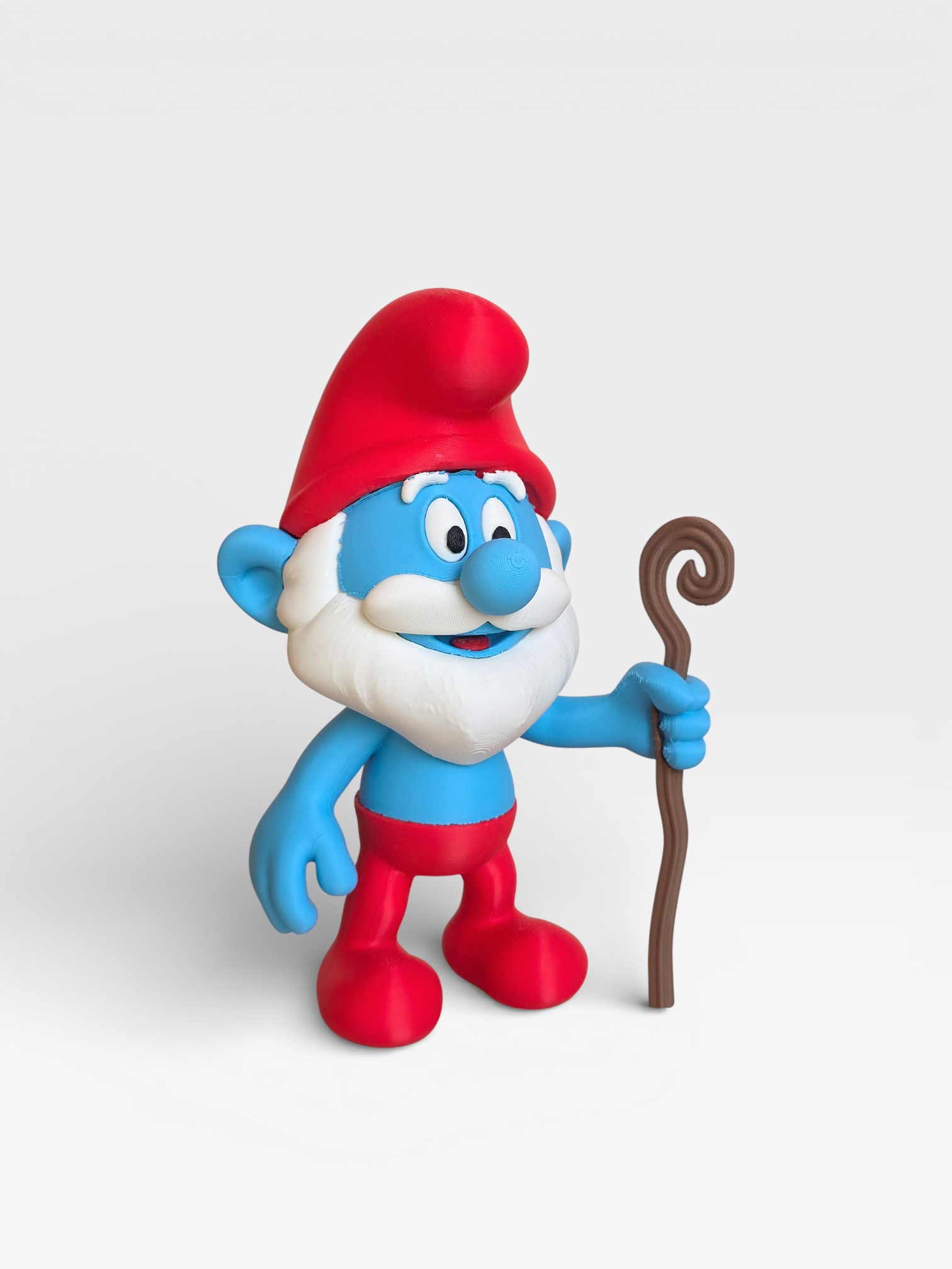 Add wisdom and classic cartoon charm to your collection with this Papa Smurf figure, inspired by the beloved leader of the Smurfs. Featuring his iconic red hat, red trousers, and long white beard, this figure perfectly captures Papa Smurf’s intelligent and caring personality.
